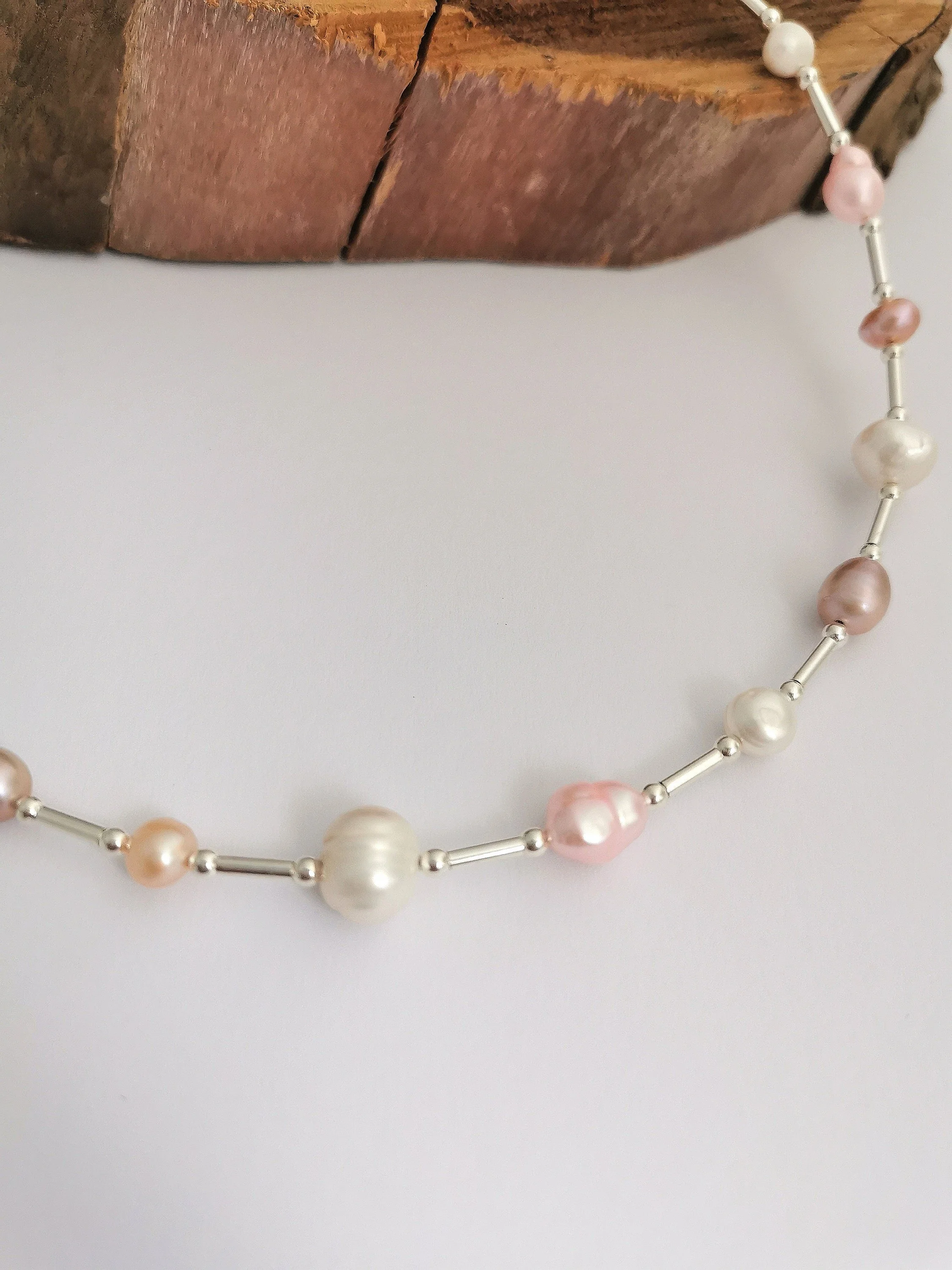 Mixed Freshwater pearl necklace, in shades of pink and white